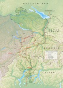 - Karte: Route der russischen Armee von Alexander Suworow in der Schweiz, 1799. Quelle: Wikipedia Route_Alexander_Suworow_1799_Schweiz_01_12.png (2140×3000)