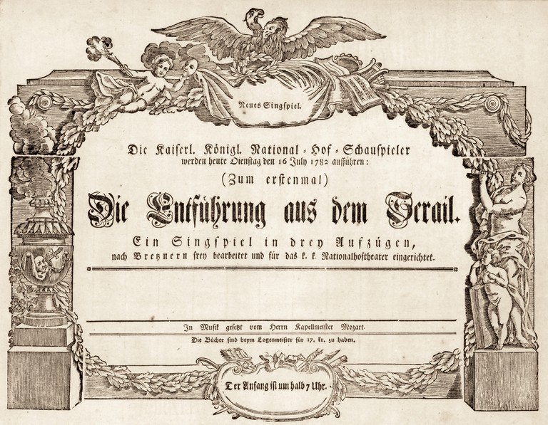 Theaterzettel der Uraufführung des Singspiels „Die Entführung aus dem Serail'“ von Mozart 1782; Quelle: Wikipedia