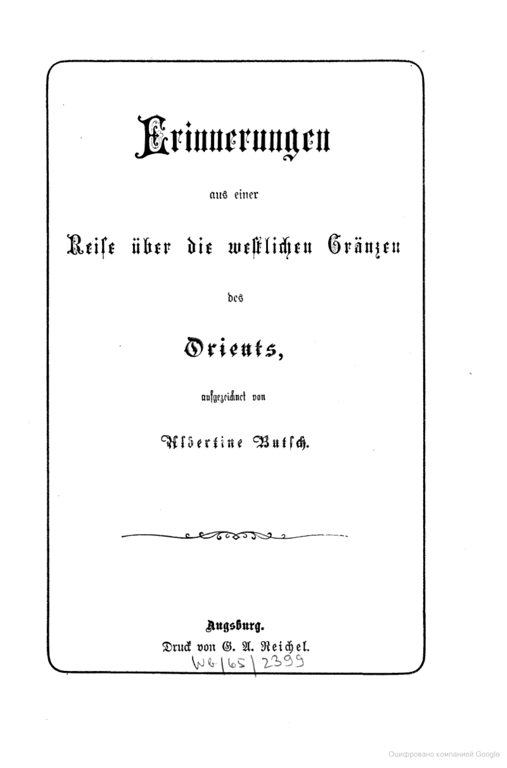 Erst 1871, nach mehr als 50-jähriger Trennung, besuchte Fiedelis Butsch seine Verwandte im Katharinental. Dank seiner Frau Albertine Butsch haben wir heute einen wertvollen Bericht über diese Reise in die Südukraine. Sie hat alles in ihren „Erinnerungen aus einer Reise über die westlichen Grenzen des Orients“ dokumentiert. Die Reise ging erst nach Wien, dann durch Ungarn, Serbien und Rumänien bis Tulcea, von dort mit dem Schiff nach Odesa und Mykolaijw.